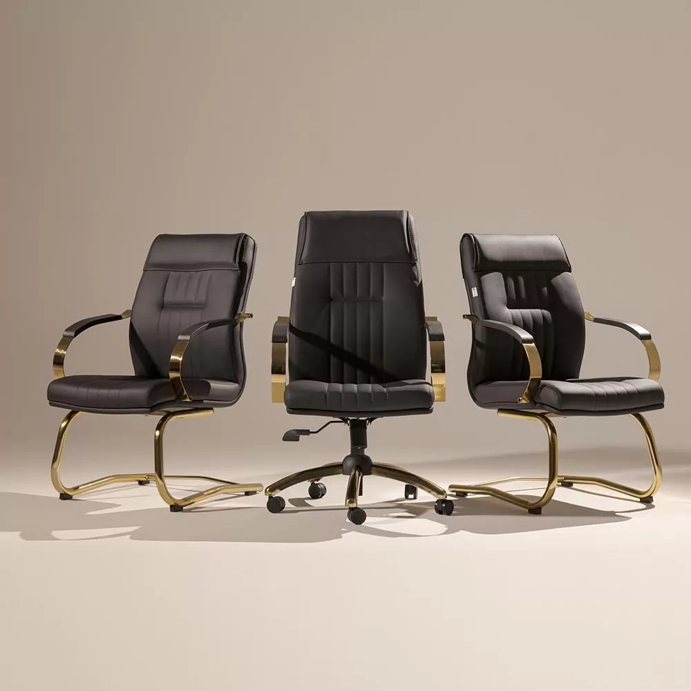 ** Conjunto contém: 1 poltrona Soft Presidente Gold e 2 poltronas Soft Diretor Gold.Capacidade de peso: 150 Kg;Revestimento em couríssimo automotivo;Aranha com capacidade para 1100 Kg;Rodízio de duplo giro ABNT 13962;Concha em madeira compensada de 20mm;Espuma de alta densidade D33 ABNT 13579;Braço em chapa de aço cromado com apoio em polipropileno;Fixação do braço no assento e no encosto não permitindo quebra;Pistão a gás;Mecanismo relax com trava.Base fixa pé em "S" em tubo de aço 1.1/4 cromado;* Produto 100% nacional.** Disponível também em outras cores, entre em contato e personalize a sua poltrona.