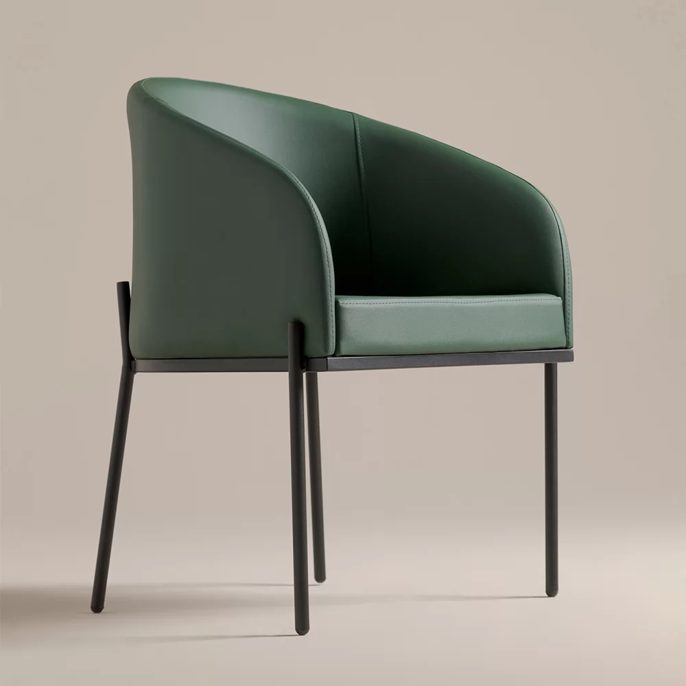 A Poltrona Shell com base em aço une perfeitamente a delicadeza, a elegância e a atemporalidade.