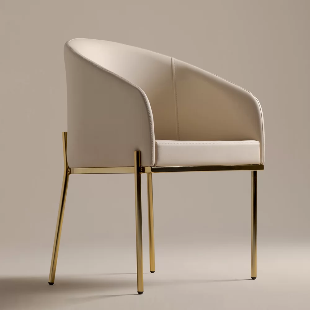 A Poltrona Shell com base em aço une perfeitamente a delicadeza, a elegância e a atemporalidade.